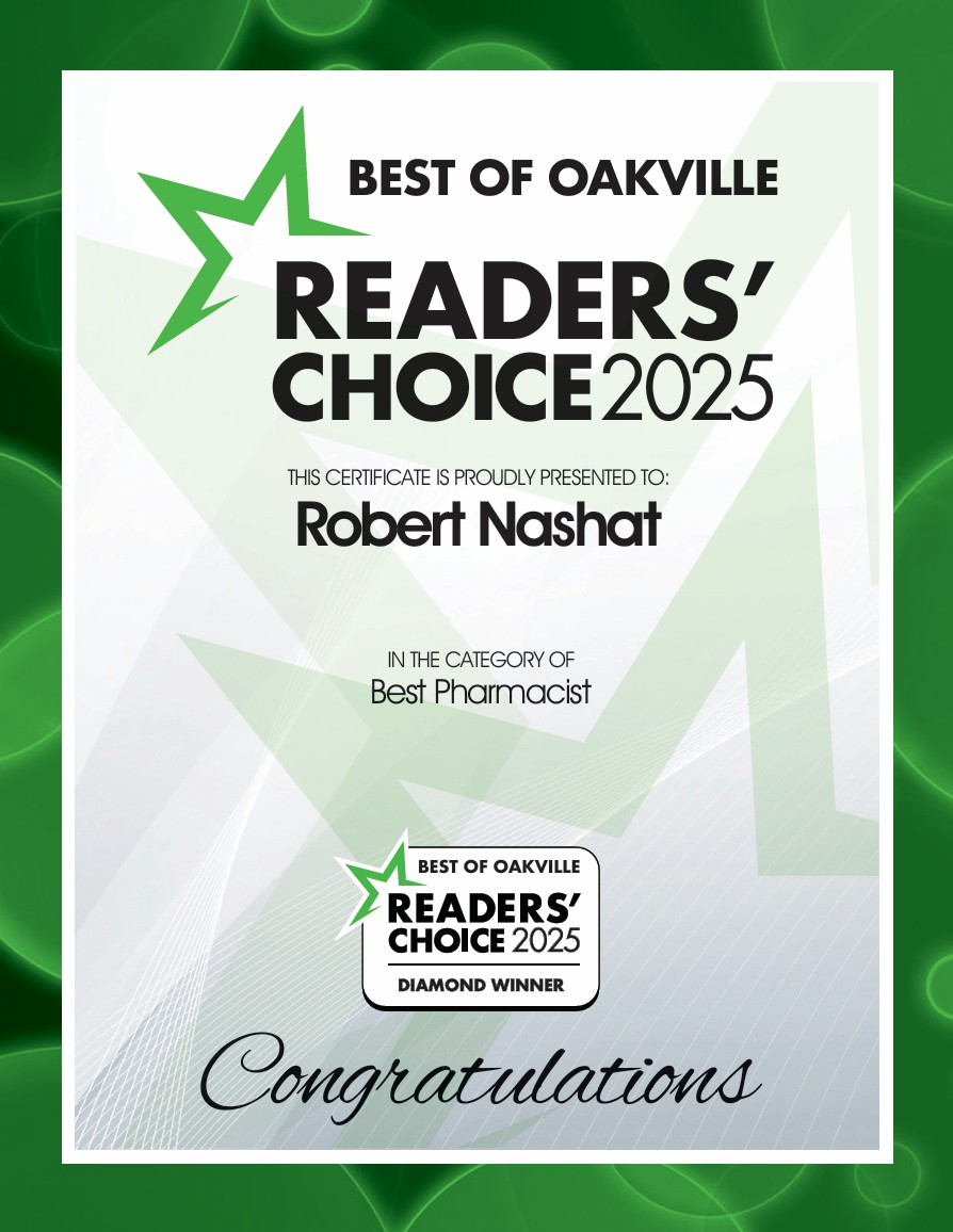 The Oakville Beaver announced its 2024 Readers Choice winners and we are proud that Robert Nashat has received the Diamond award for Best Pharmacist in Oakville.